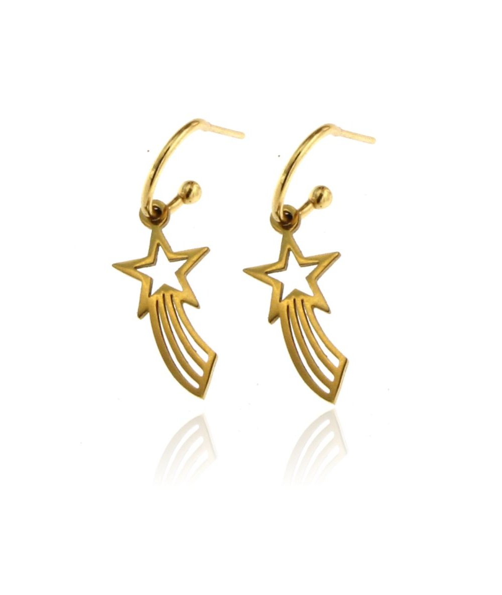 Orecchini cerchi in acciaio inox finitura oro con stelle cadenti
