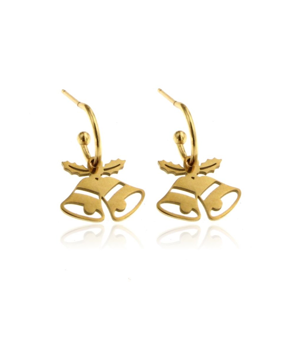 Orecchini cerchi in acciaio inox finitura oro con campanelli