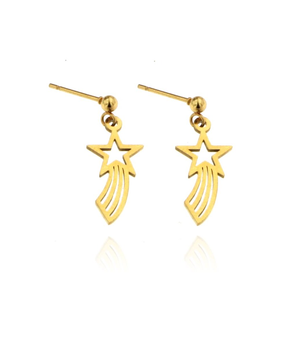 Orecchini in acciaio inox finitura oro con stelle cadenti