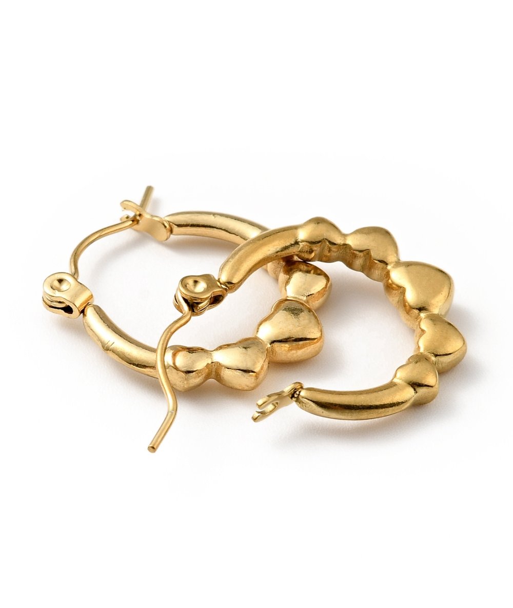 Orecchini cerchi con cuori acciaio inox oro - Lamù gioielli