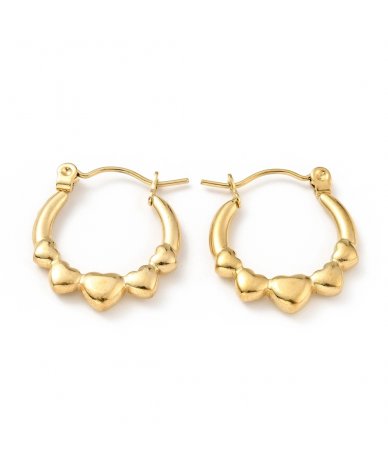 Orecchini cerchi con cuori acciaio inox oro