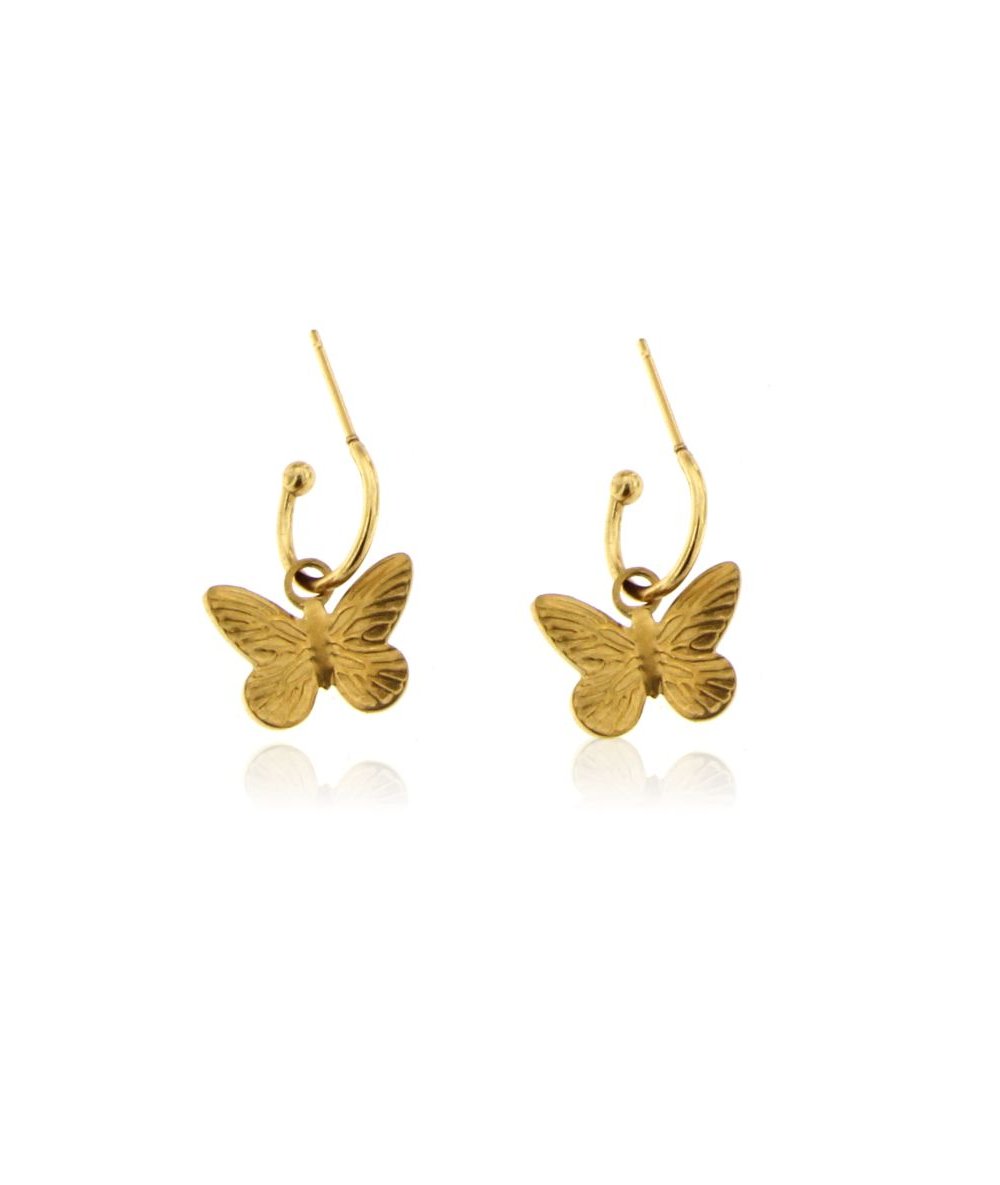 Orecchini cerchi in acciaio inox finitura oro con pendenti farfalle