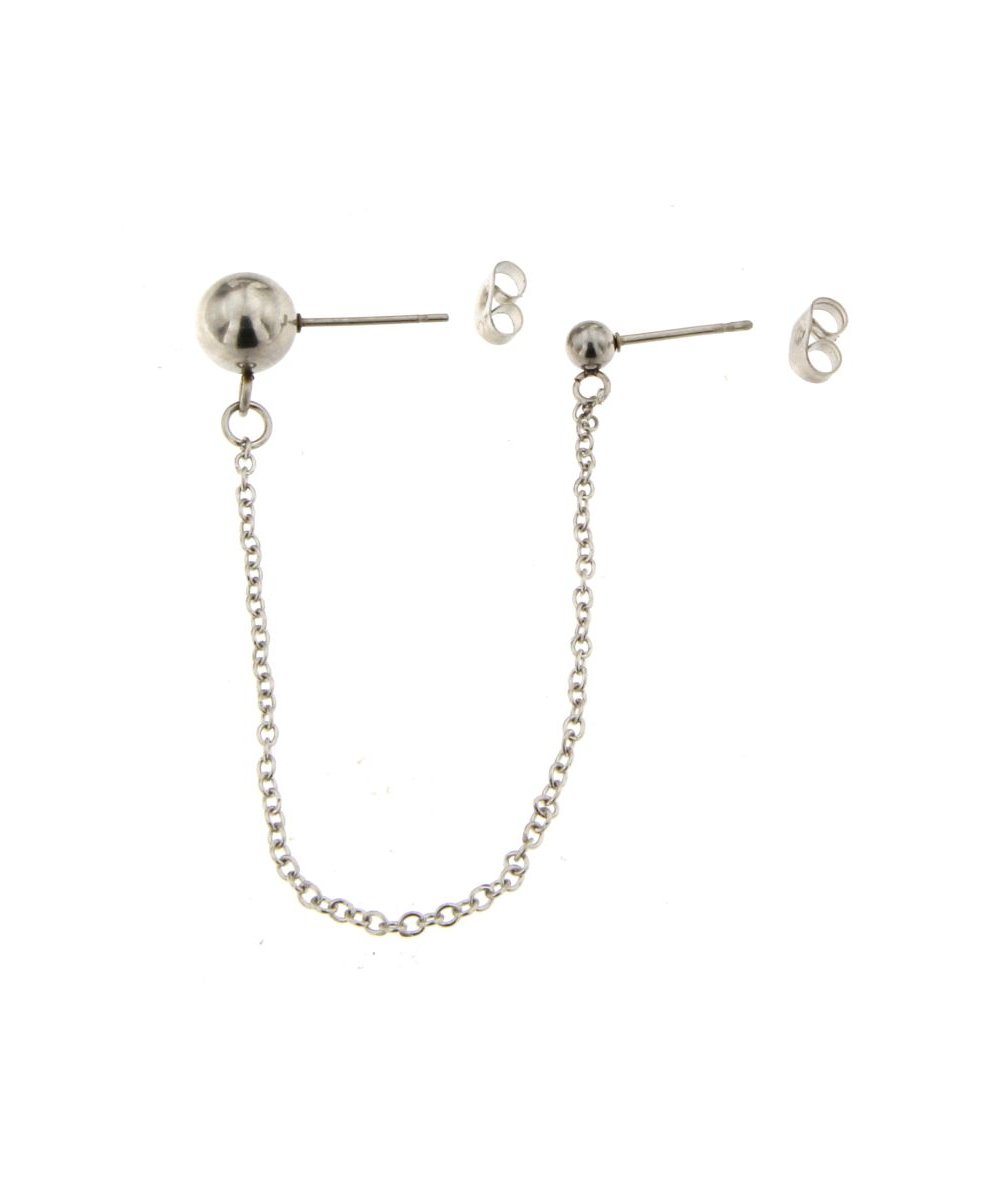 Orecchino in acciaio inox per doppio buco sfera grande e piccola sfera
