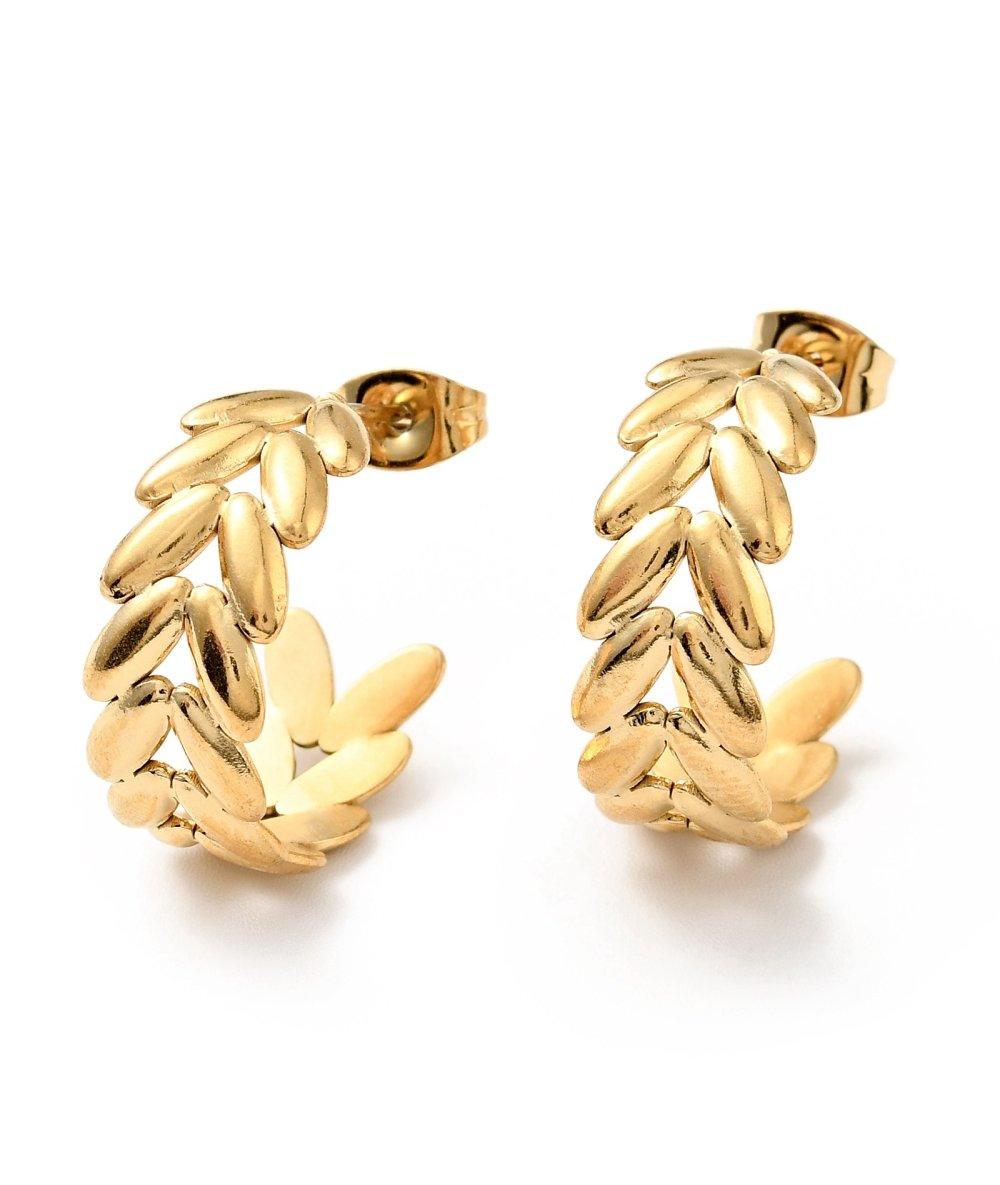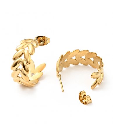 Orecchini cerchi decoro foglia in acciaio inox oro