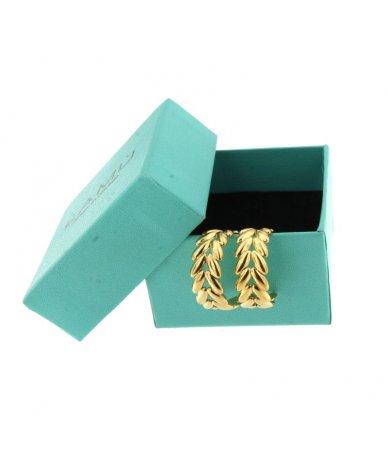 Orecchini cerchi decoro foglia in acciaio inox oro - Lamù gioielli