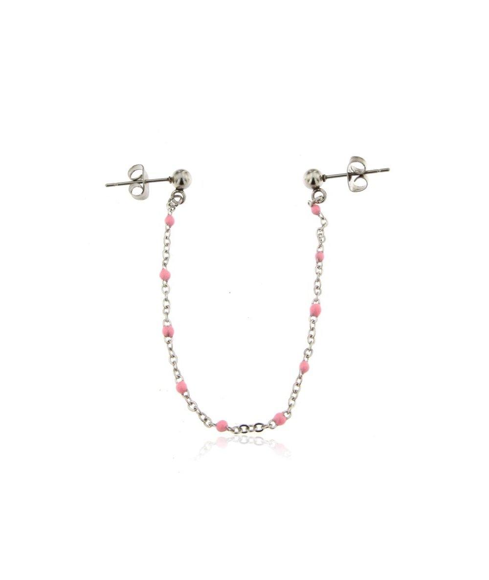 Orecchino per doppio buco con catena in acciaio inox smaltata rosa