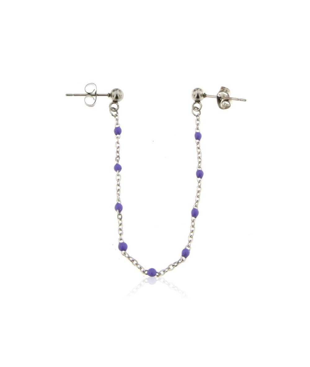 Orecchino per doppio buco con catena in acciaio inox smaltata lilla