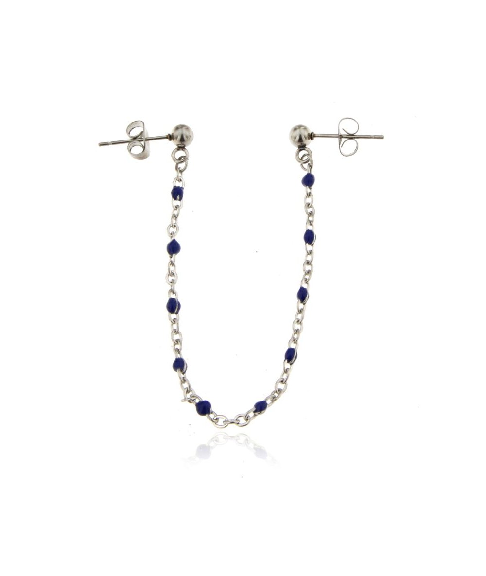 Orecchino per doppio buco con catena in acciaio inox smaltata blu