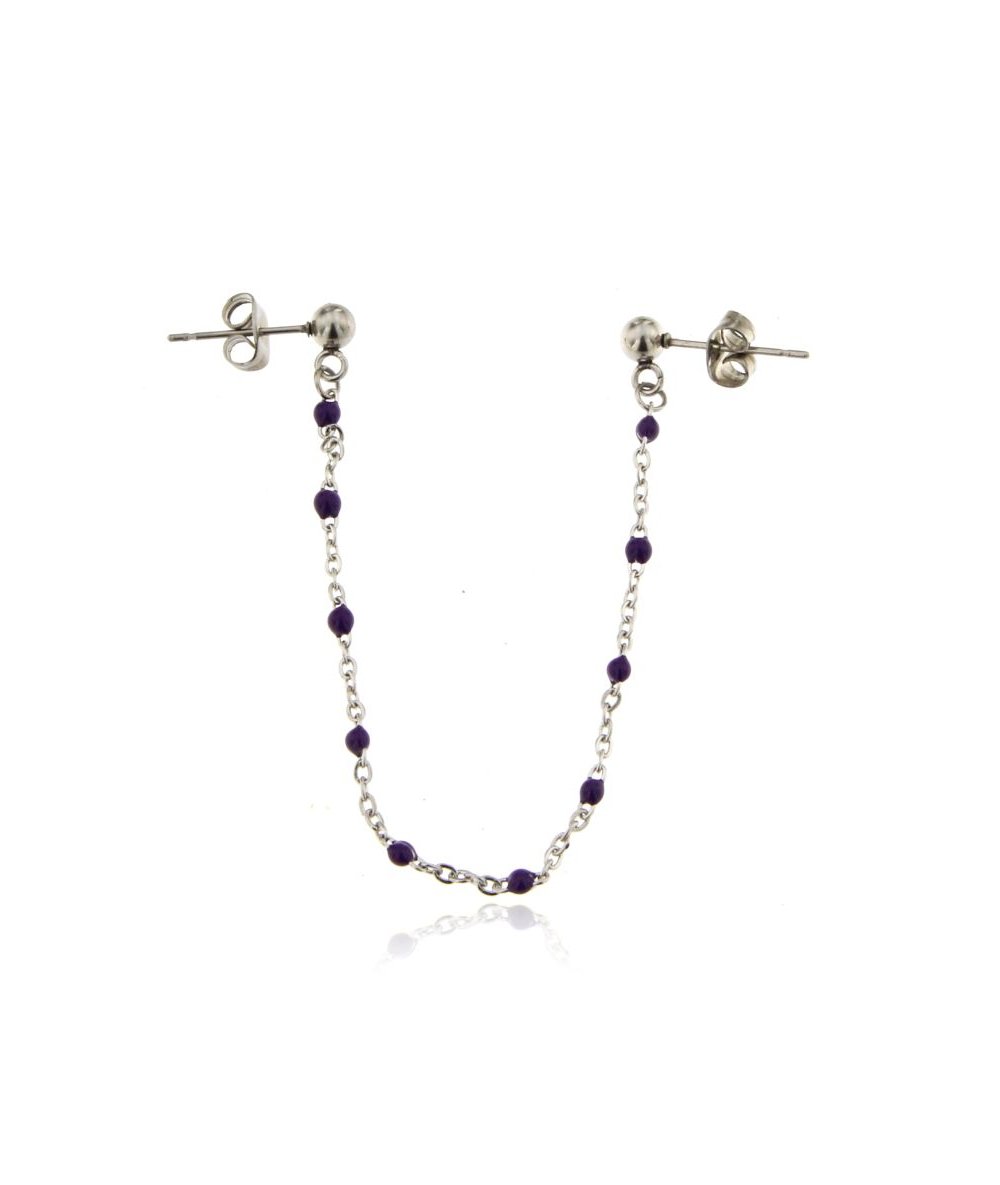 Orecchino per doppio buco con catena in acciaio inox smaltata viola