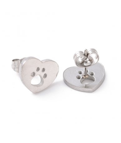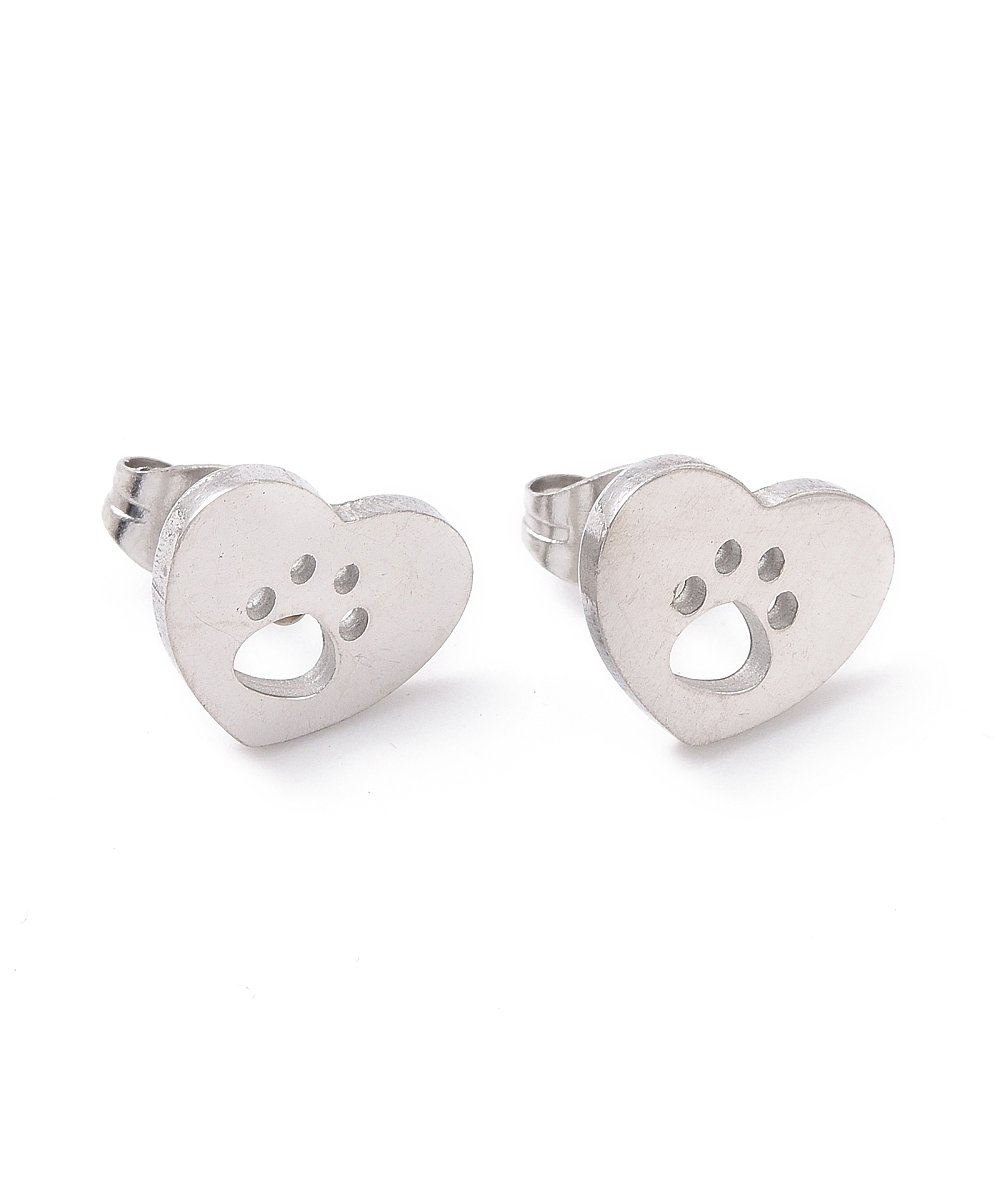 Orecchini cuore con impronta zampa in acciaio inox