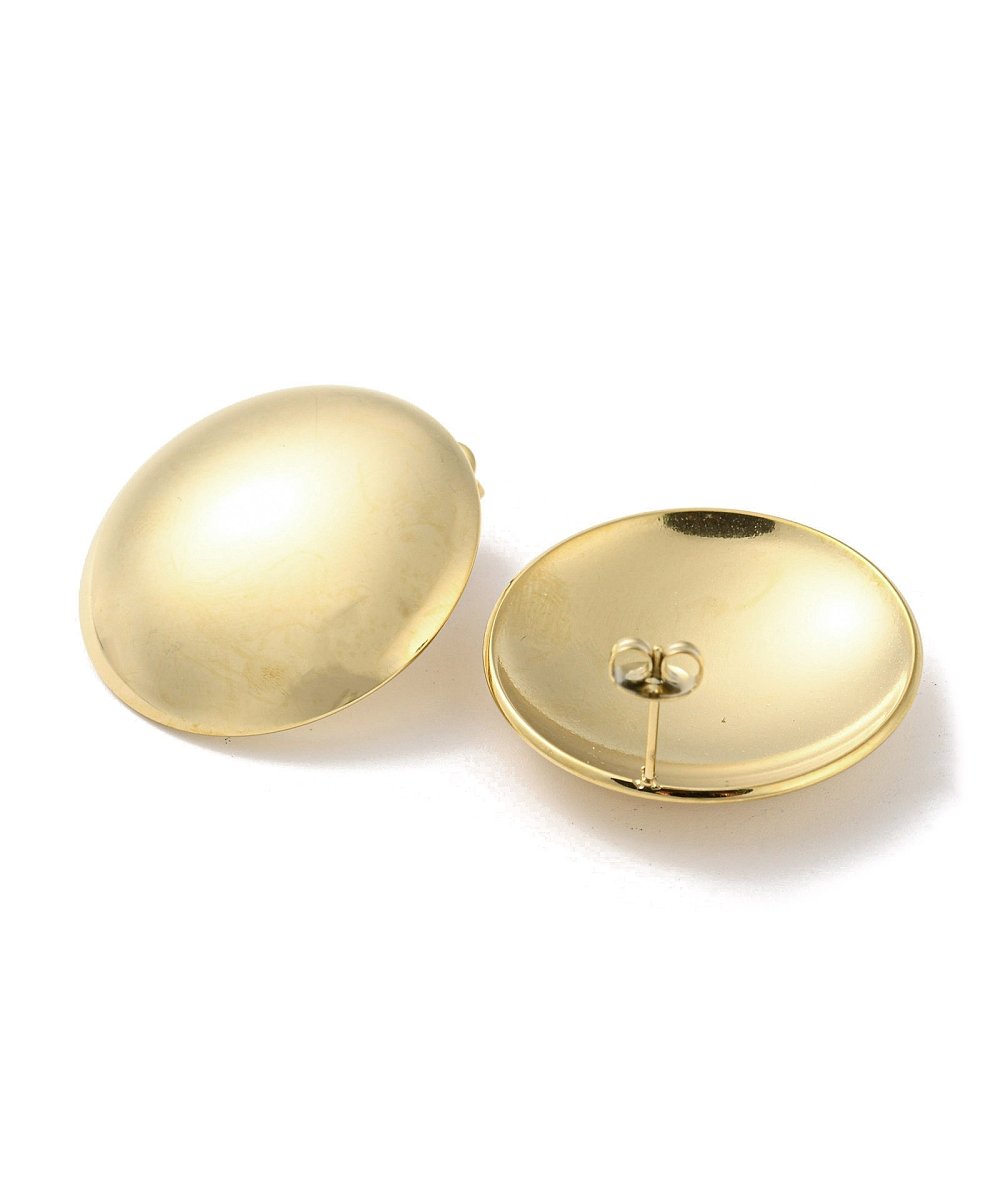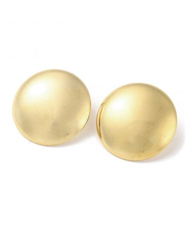 Orecchini a lobo bottone grande tondo in acciaio inox oro