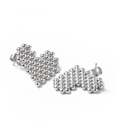 Orecchini bottone cuore con piccole sfere in acciaio inox
