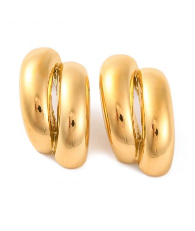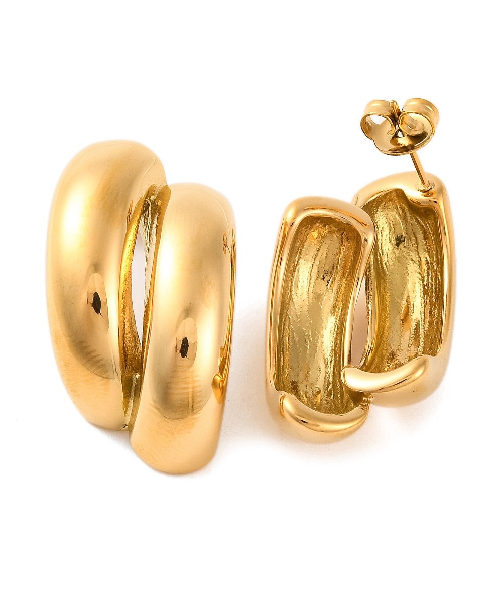 Orecchini bottone bombati doppia fascia in acciaio inox oro 18k