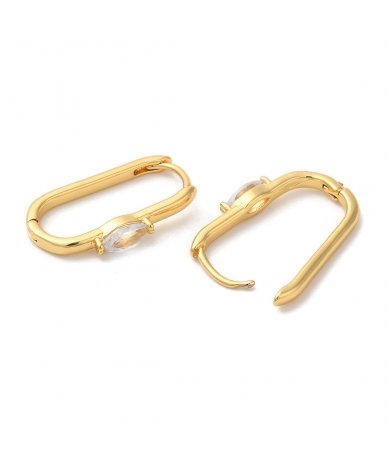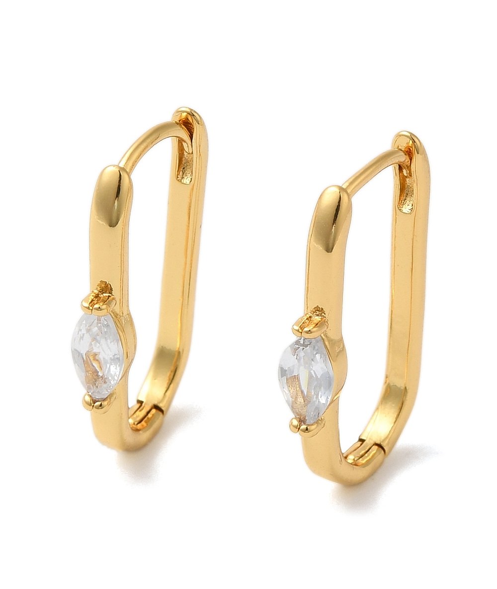 Orecchini cerchi rettangolari con zircone ovale cristal in acciaio inox oro 18k