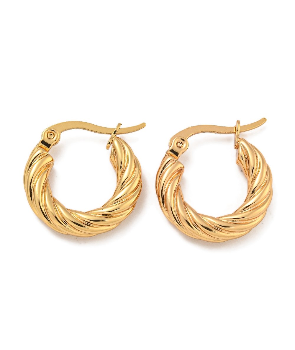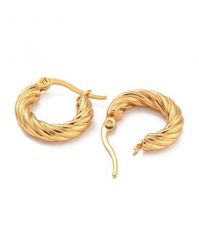 Orecchini cerchi tubolari ritorti in acciaio inox oro 18k