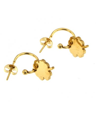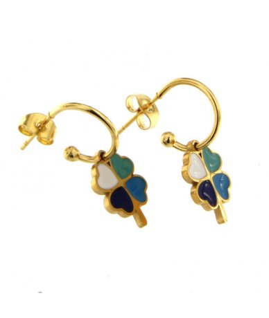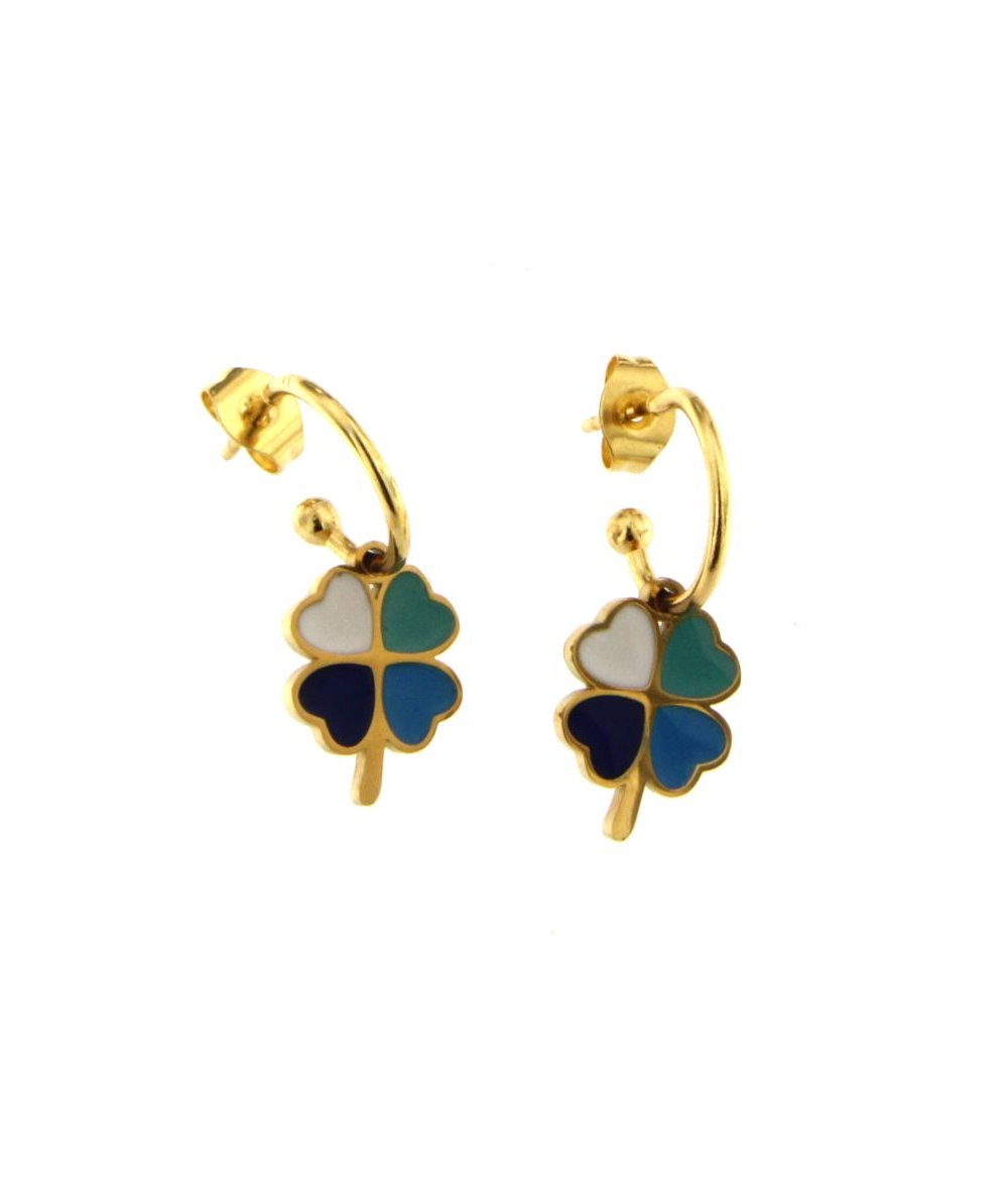 Orecchini cerchi in acciaio inox oro 18k con pendente quadrifoglio multicolore blu