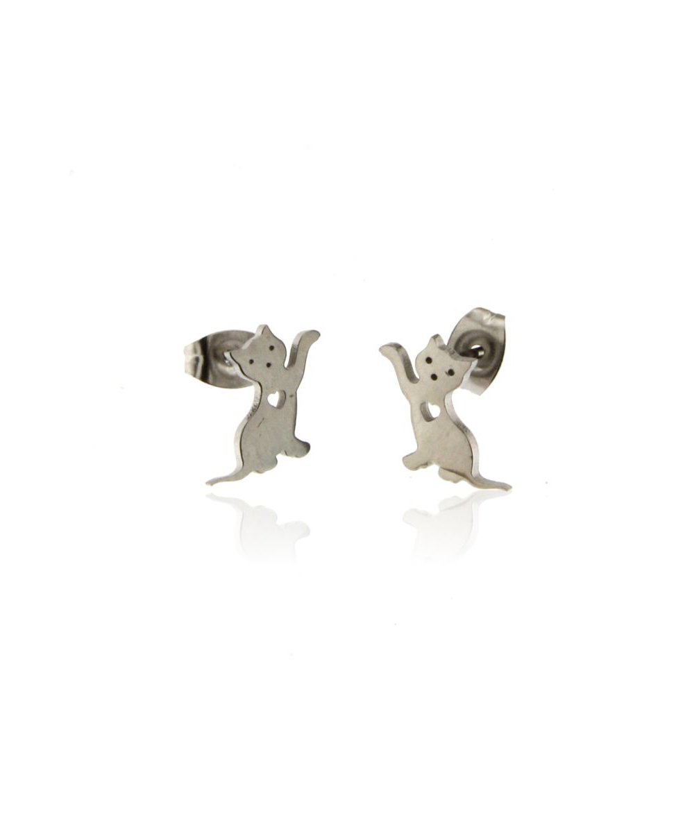 Orecchini piccoli a lobo gatto con cuore in acciaio inox
