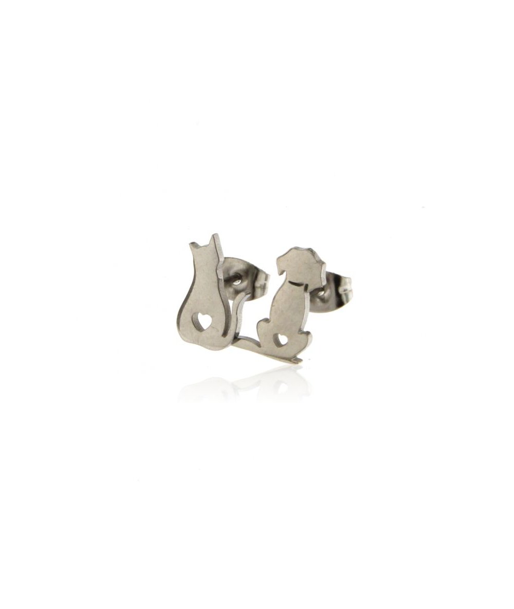 Orecchini piccoli a lobo cane e gatto in acciaio inox