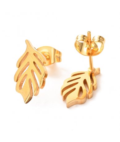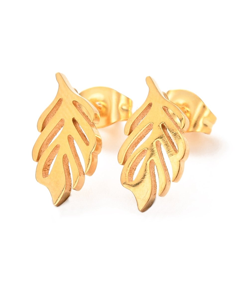 Orecchini piccoli foglia in acciaio inox oro 18k