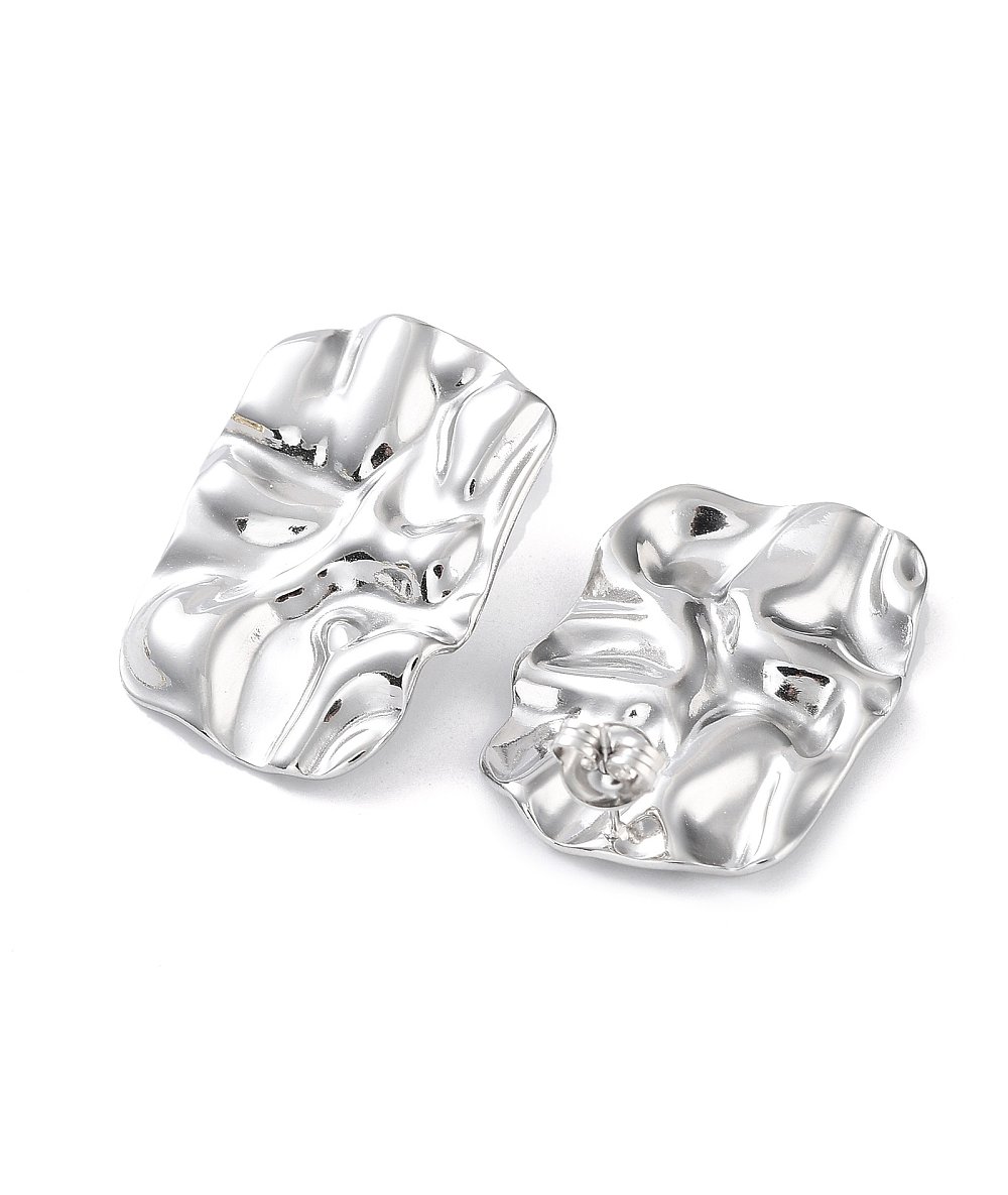 Orecchini bottone rettangolari piatti in acciaio inox martellato
