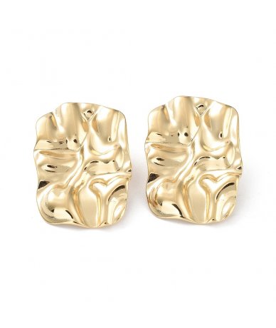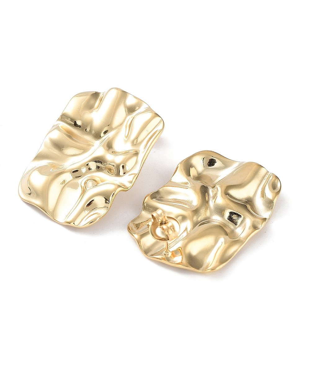 Orecchini bottone rettangolari piatti in acciaio inox martellato oro 18k