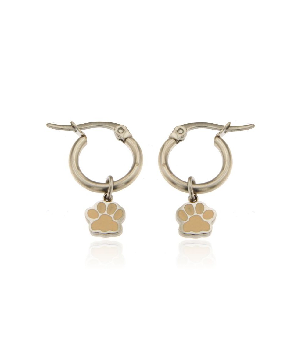 Orecchini cerchi con pendente orma zampa smaltata rosa in acciaio inox