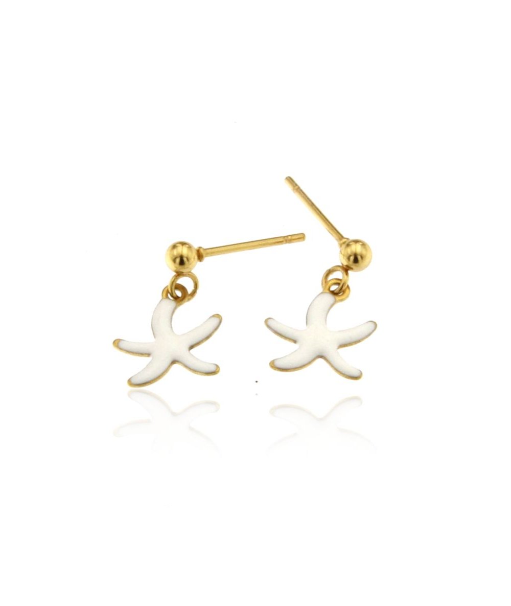 Orecchini pendenti con stella marina smaltata bianca in acciaio inox finitura oro