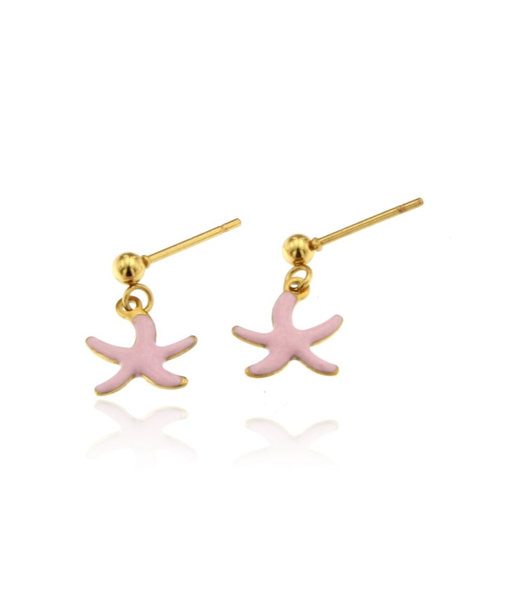 Orecchini pendenti con stella marina smaltata rosa in acciaio inox finitura oro