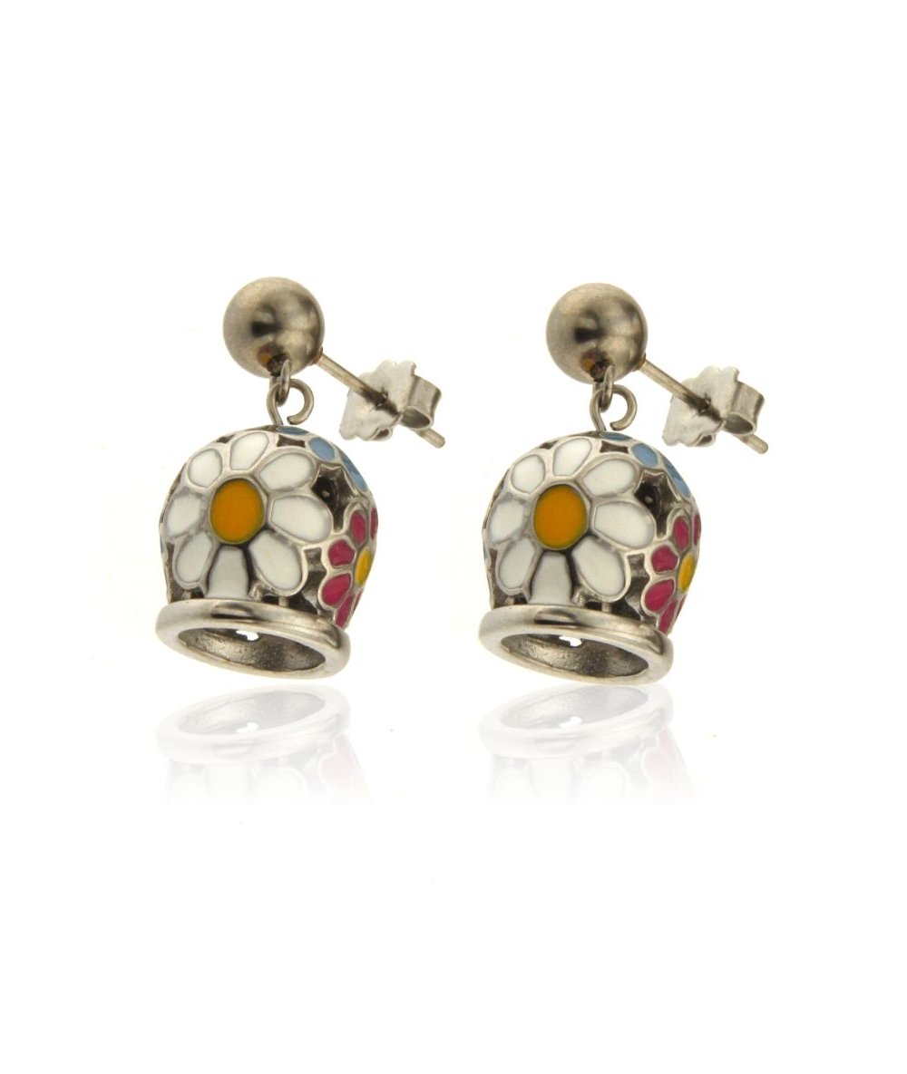 Orecchini pendenti con campanella smaltata in acciaio inox