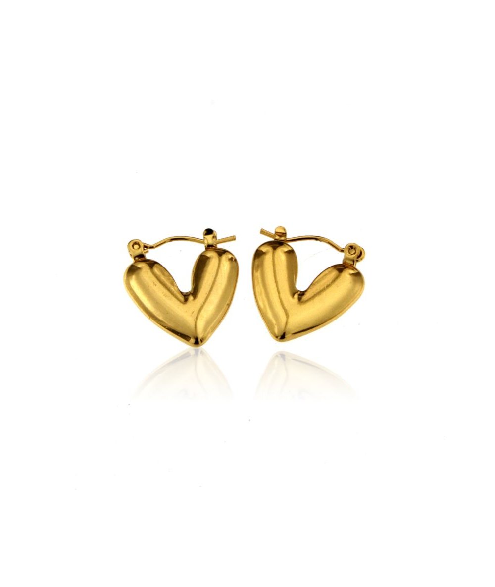 Orecchini cuore bombato in acciaio inox placcato oro 18k