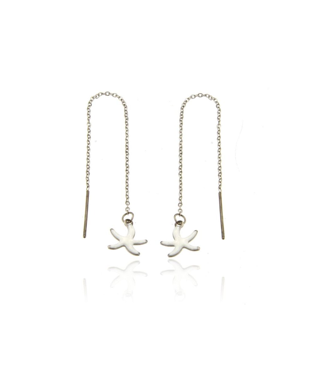 Orecchini lunghi saliscendi in acciaio inox con pendente stella marina bianca