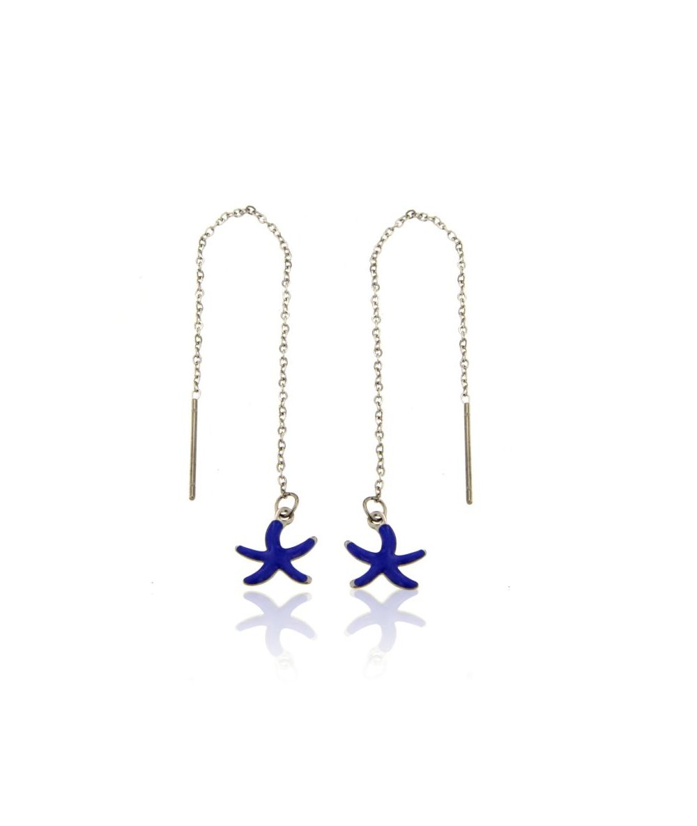 Orecchini lunghi saliscendi in acciaio inox con pendente stella marina blu