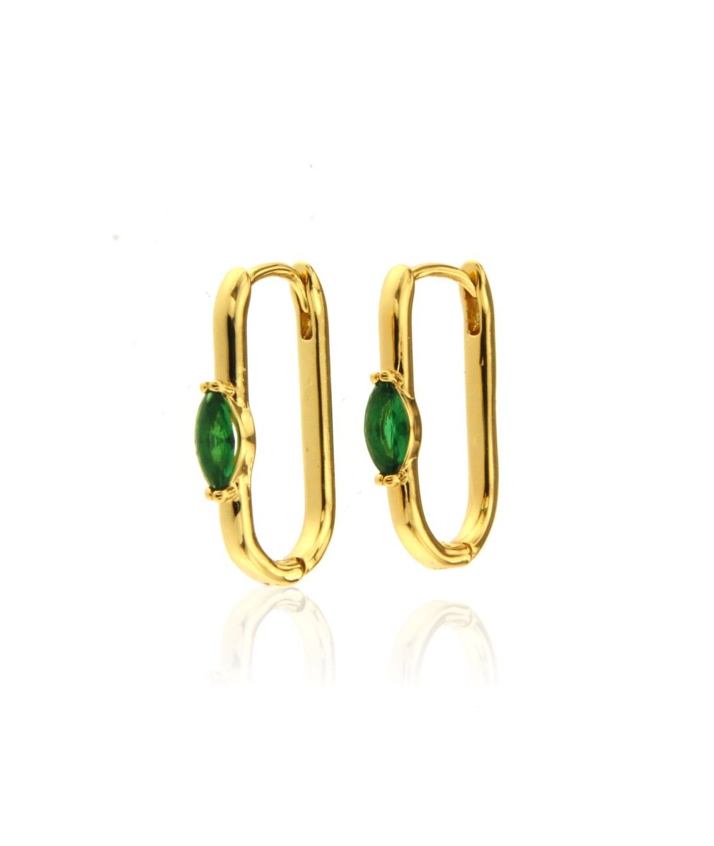 Orecchini rettangolari con zirconi verdi in acciaio inox oro 18k