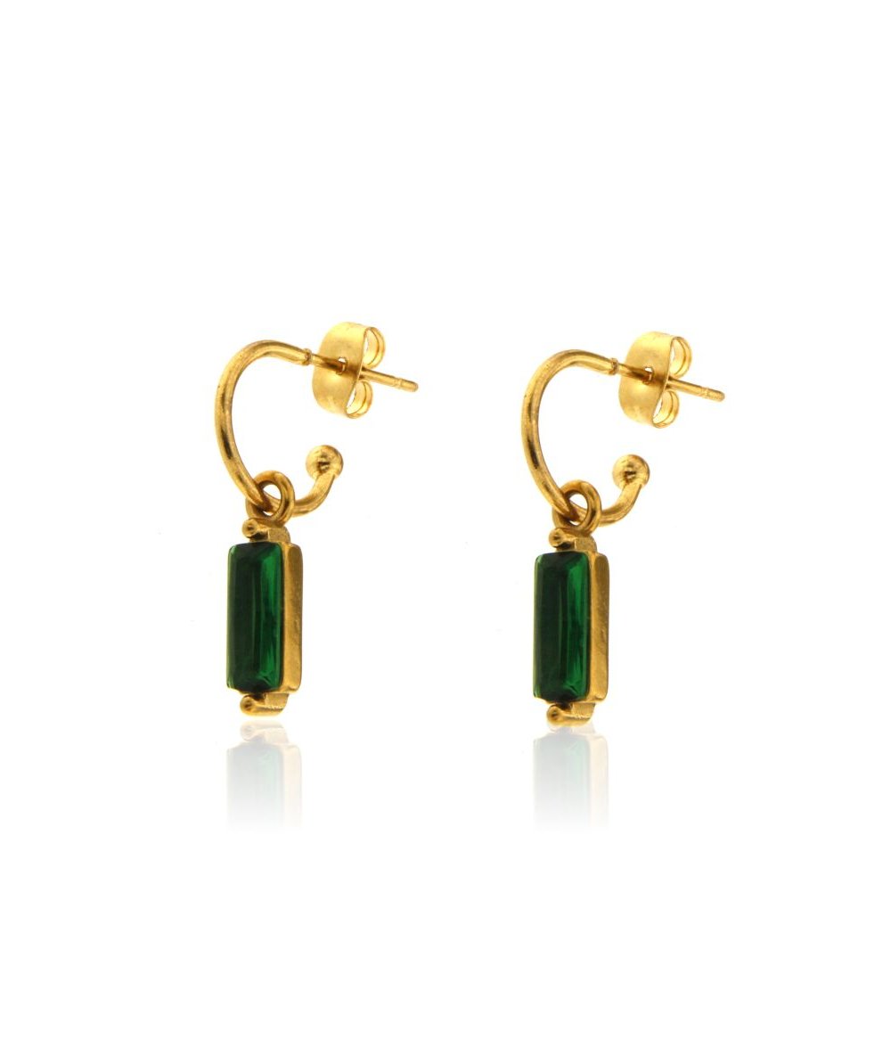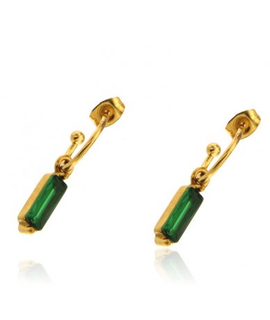 Orecchini cerchi in acciaio inox oro 18k con zirconi rettangolari verdi