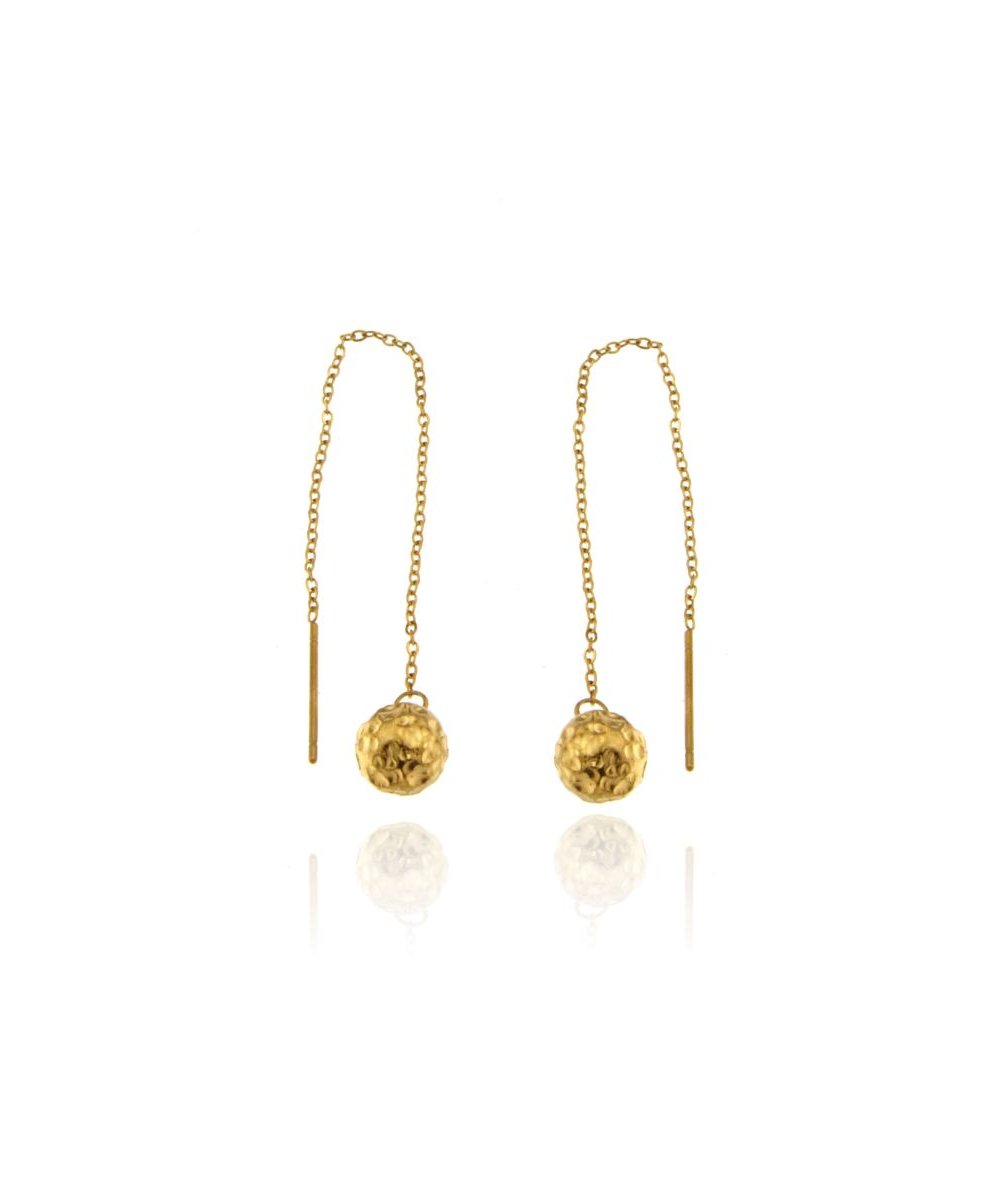 Orecchini lunghi saliscendi con sfera martellata in acciaio inox placcato oro 18k