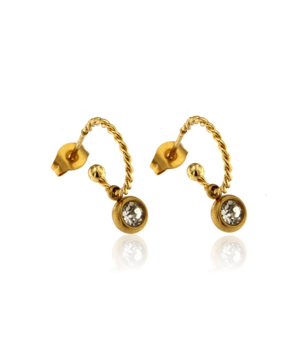 Orecchini cerchi con pendente punto luce cristal in acciaio inox placcato oro 18k