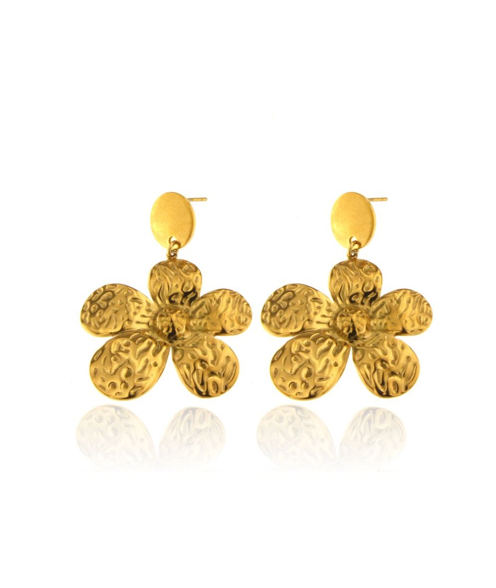 Orecchini in acciaio inox placcato oro 18k con pendente margherita