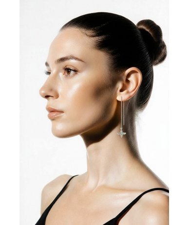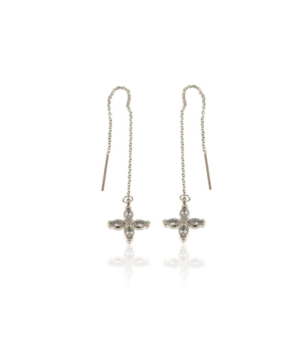 Orecchini saliscendi in acciaio inox con pendente croce fiore con zirconi