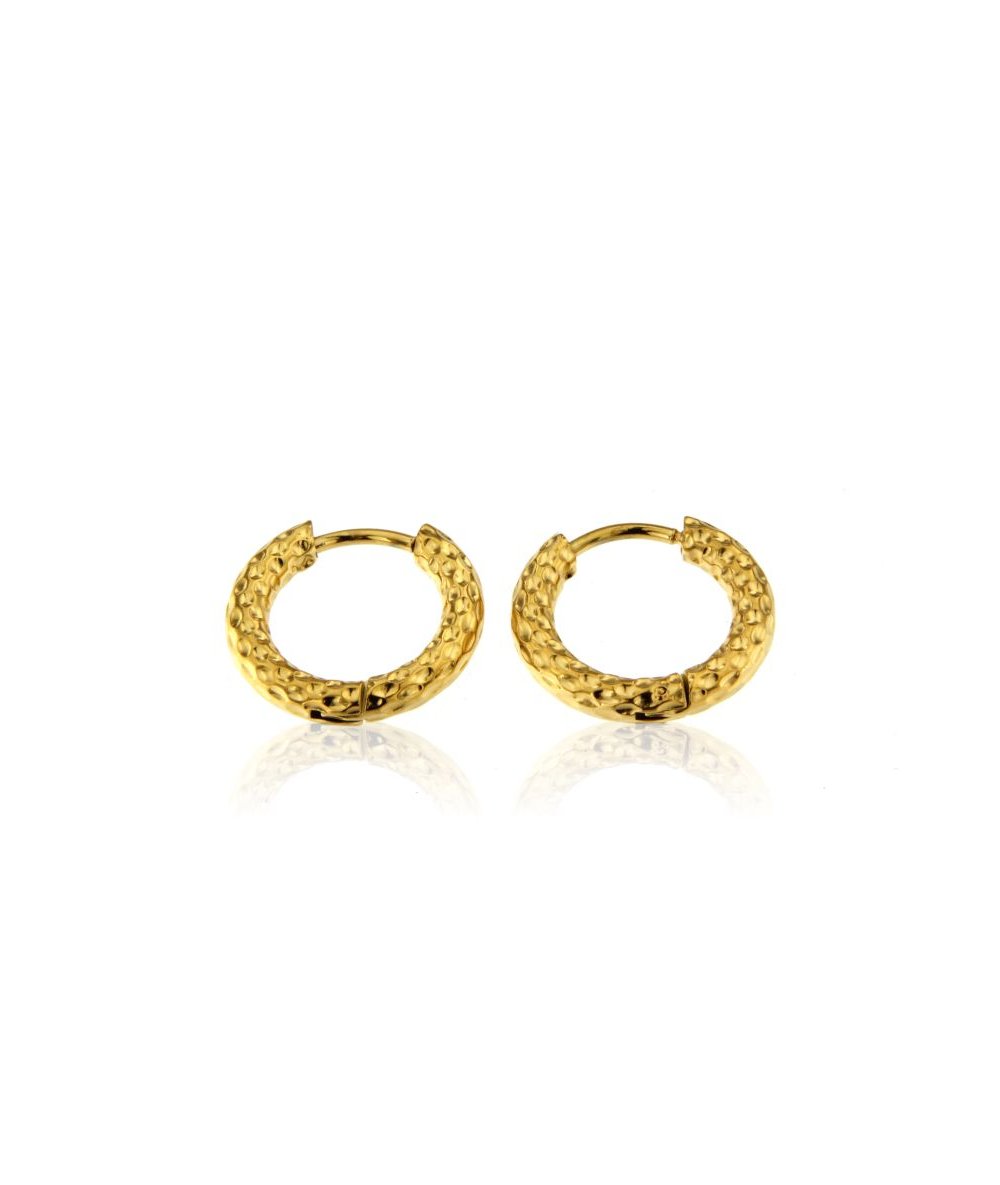 Orecchini huggie cerchi 1.5 cm tubolari martellati in acciaio inox oro 18k