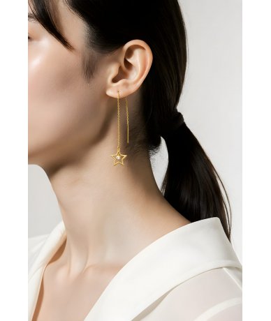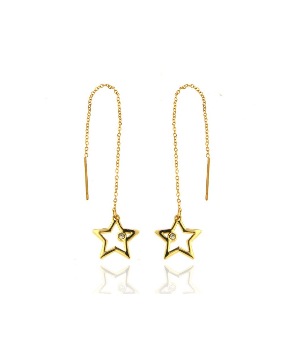 Orecchini lunghi saliscendi con stella in acciaio inox placcato oro 18k