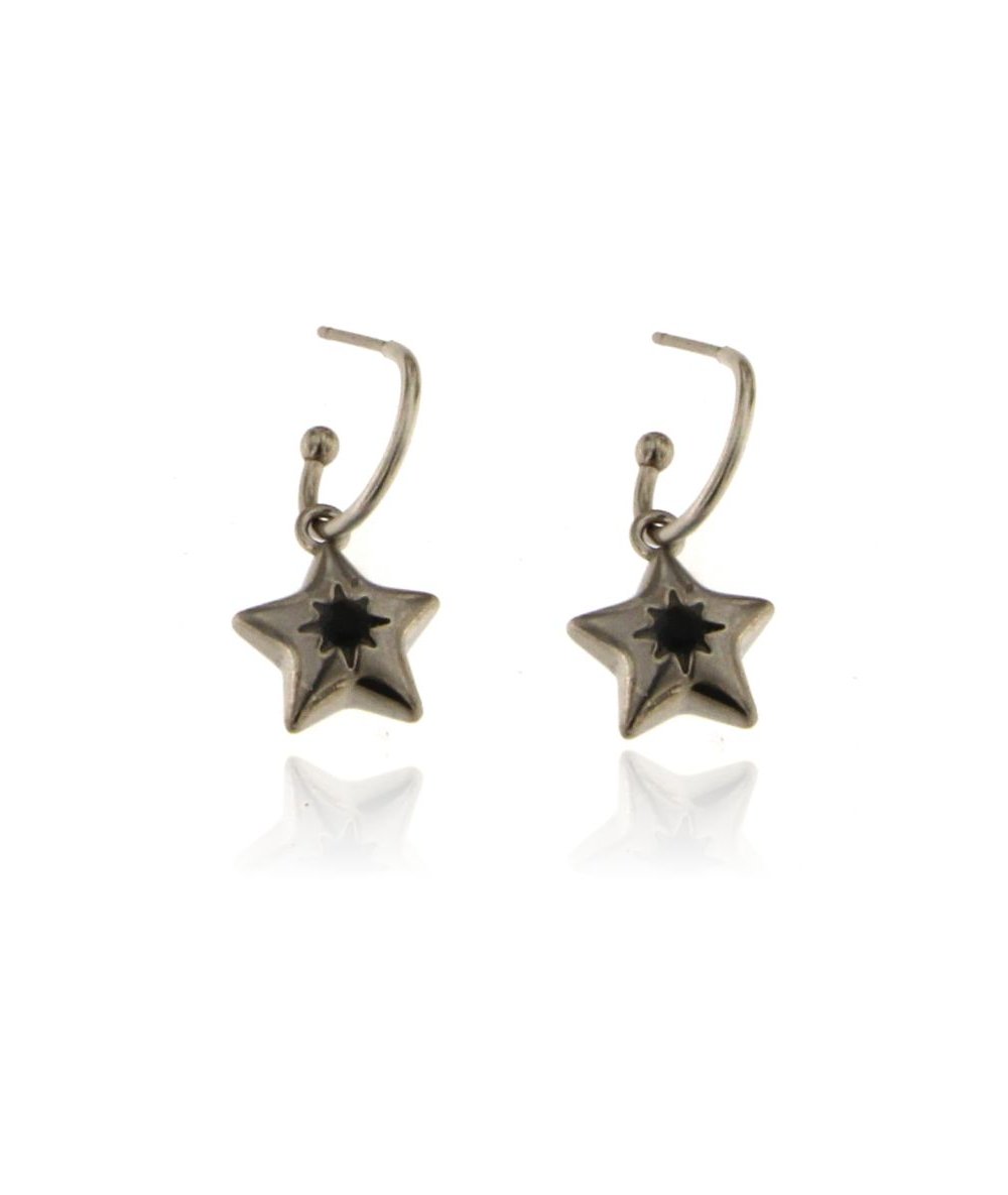 Orecchini semicerchi con pendente stella con punto luce colore nero in acciaio inox