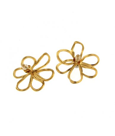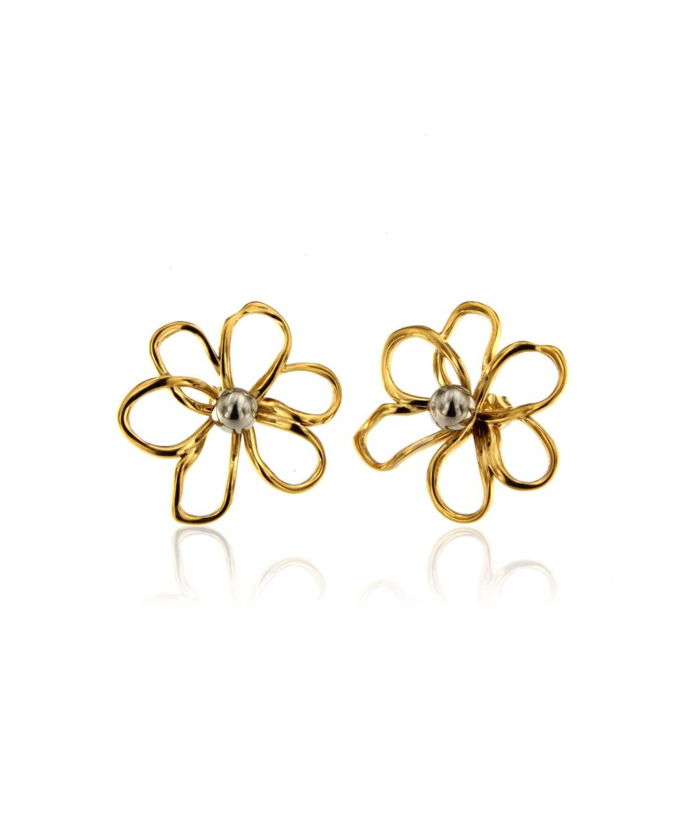 Orecchini lobo margherita in acciaio inox bicolore
