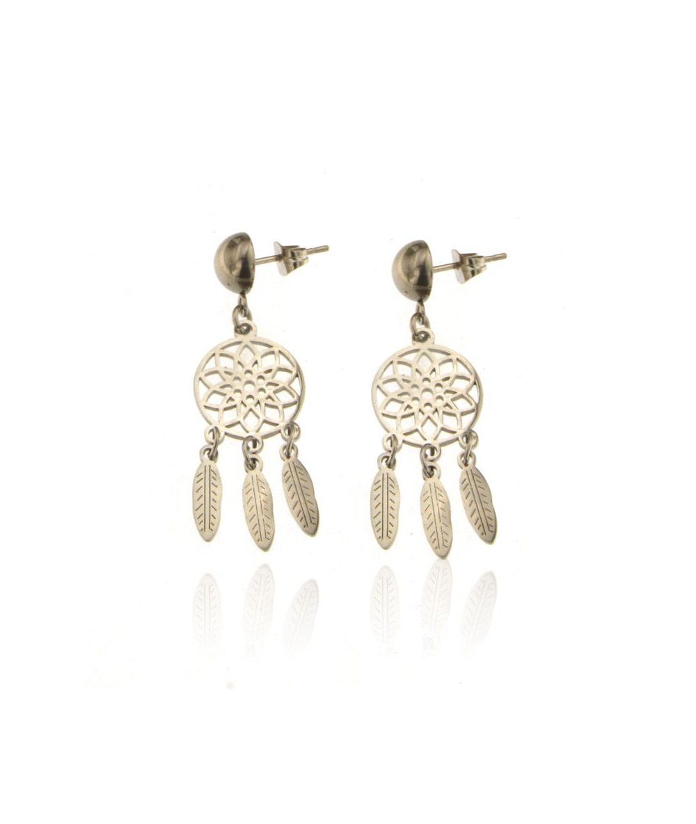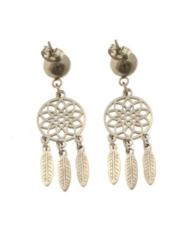 Orecchini in acciaio inox con supporti semisfera e pendente acchiappasogni