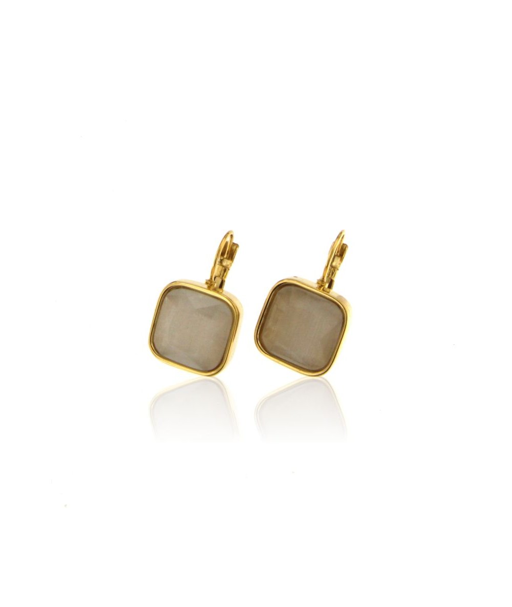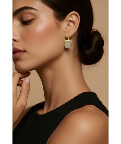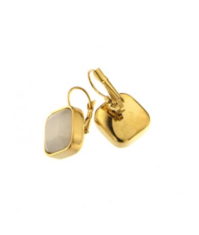 Orecchini monachella quadrati in acciaio inox placcato oro 18k con resina colore bianco