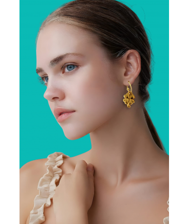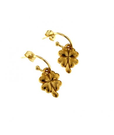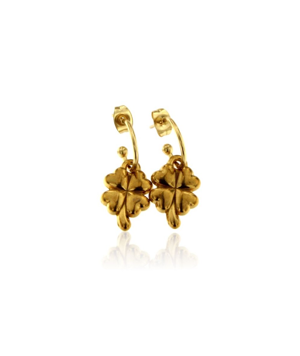 Orecchini semicerchi con pendente quadrifoglio in acciaio inox placcato oro 18k