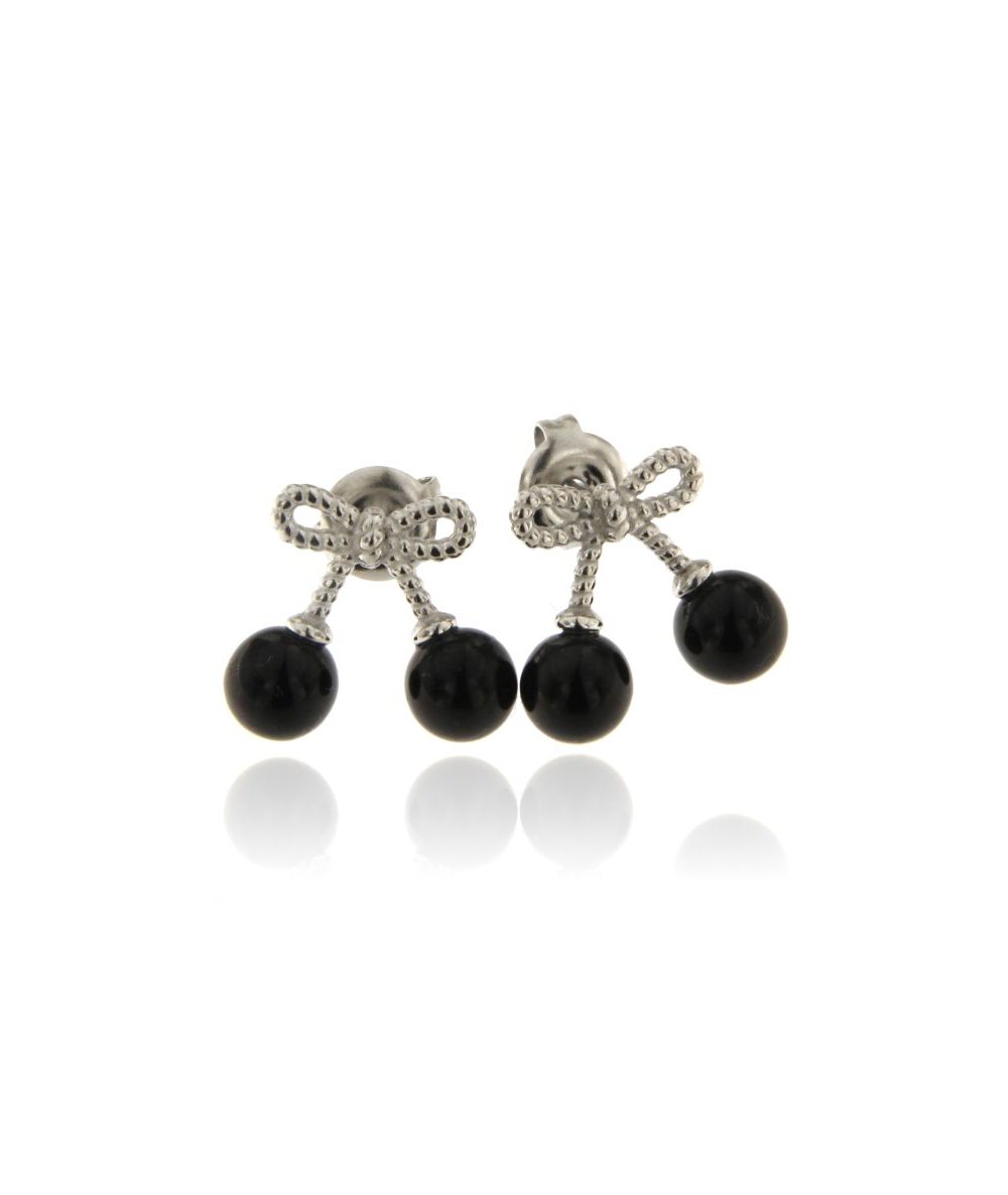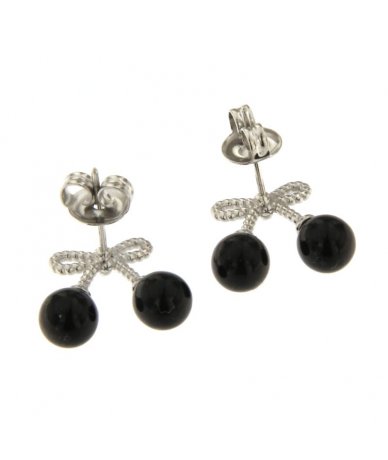 Orecchini fiocco con perline nere in acciaio inox