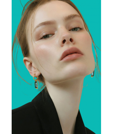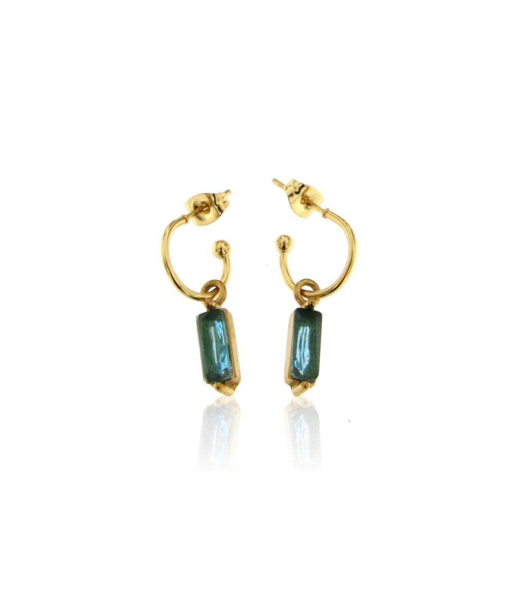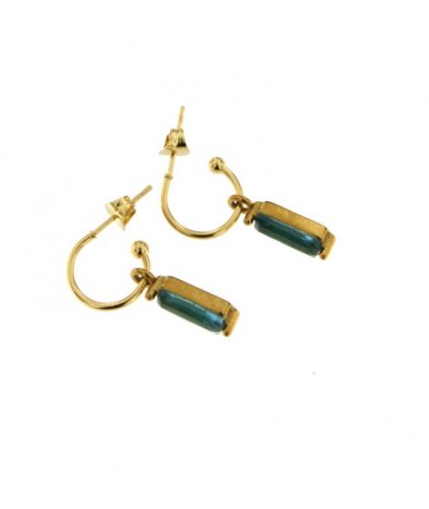 Orecchini semicerchi con pendente zircone cubico blu fiordaliso in acciaio inox placcato oro 18k
