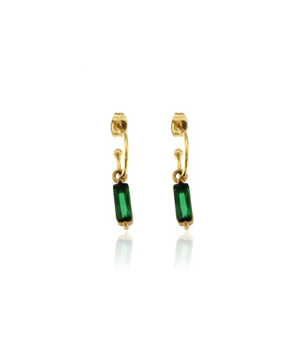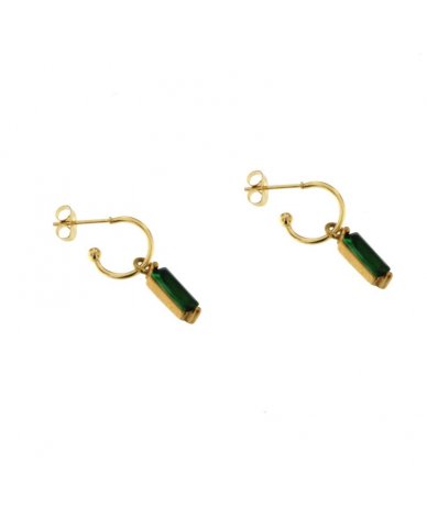 Orecchini semicerchi con pendente zircone cubico verde in acciaio inox placcato oro 18k