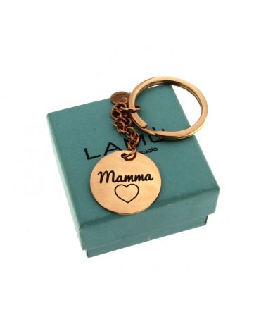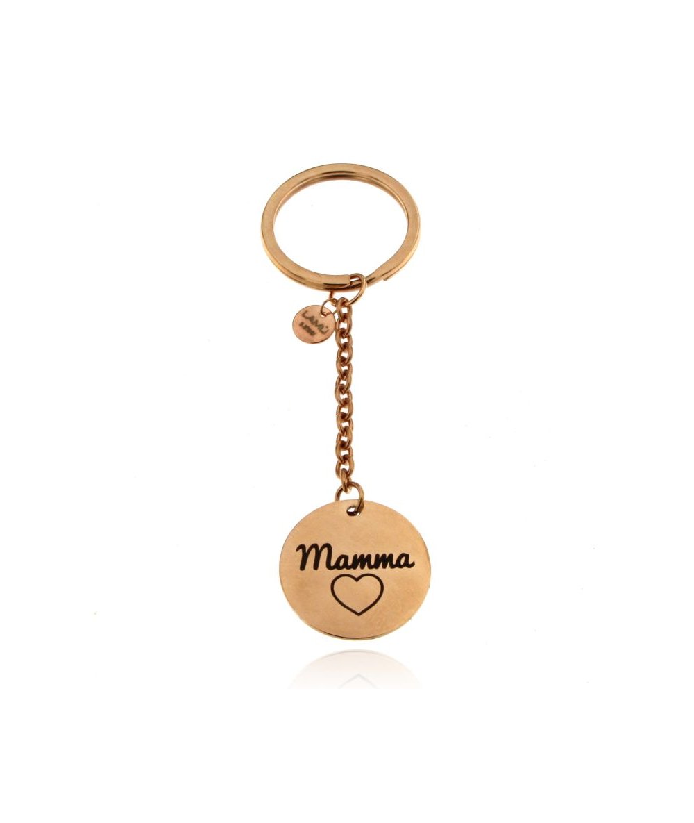Portachiavi con tondo inciso "Mamma" in acciaio inox oro rosa